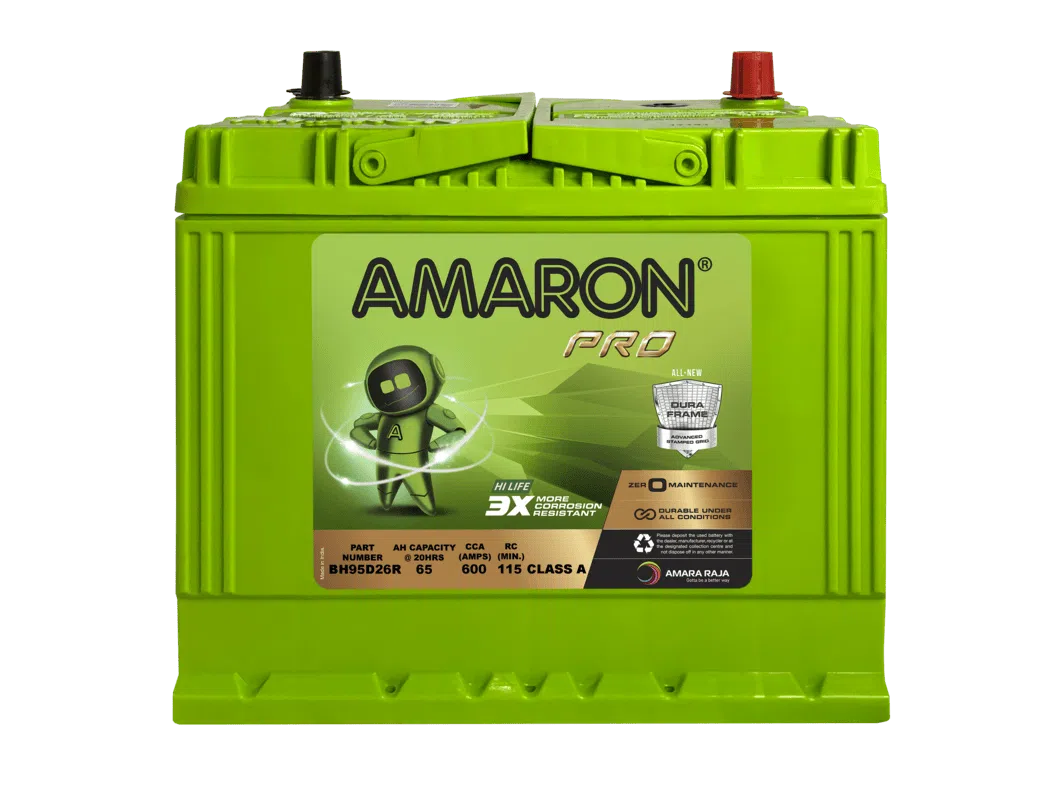 الرمز BH100D26 يشير إلى فئة البطاريات ذات القدرة العالية من إنتاج شركة Amaron (سلسلة Hilife Pro)، وهي مخصصة للسيارات التي تتطلب تيار بدء تشغيل قوي وسعة تخزينية عالية.